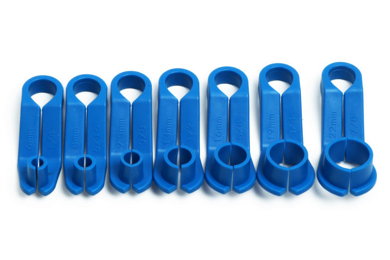The Oil Cooler Line Quick Disconnect Kit provides 7 different sized tools for removing/disconnecting fuel lines, heater lines, AC cooling lines and other accessories on quick disconnect fittings.