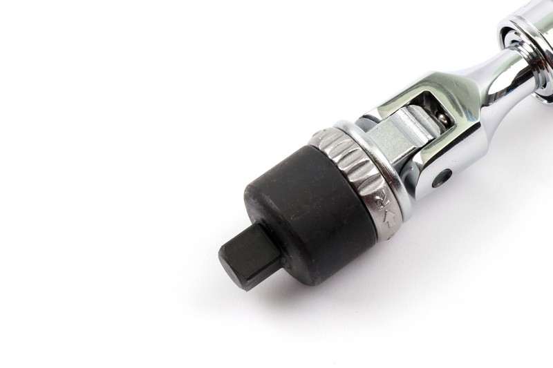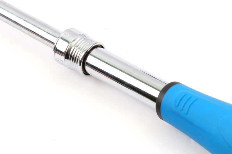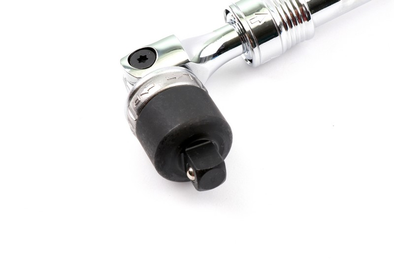 Square drive size: 3/8"(9.5mm). Teeth: 36T. Length: 180mm(elastic width 273-375 mm) Head rotates: 180∘ .Material: carbon steel