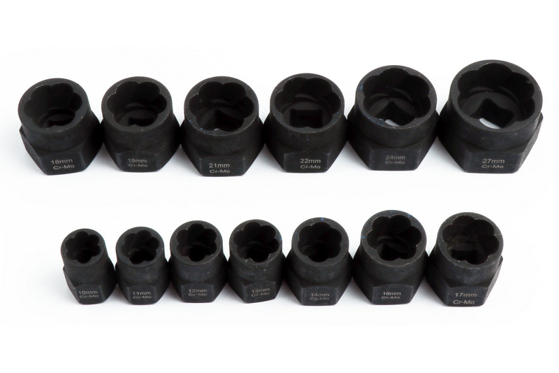 These nut removal caps are conical in shape, and the hardened sharp cutting edges will bite into the damaged nut.