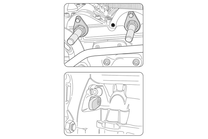 For locking of both camshafts and crankshaft on VAG 1.2 L 3-cylonder 6V and 12V petrol engines.