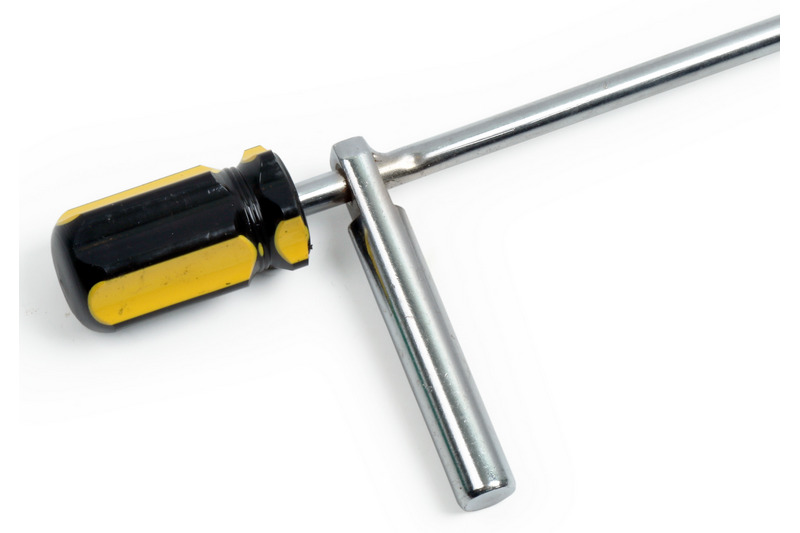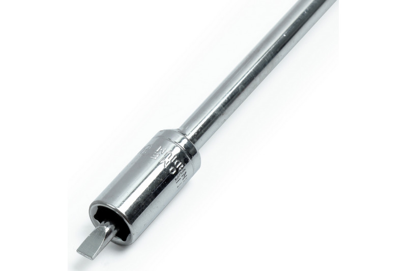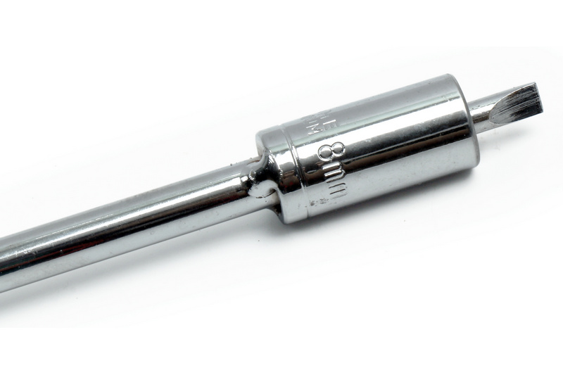 8mm hex nut and screwdriverslot.
