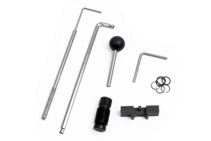 Ball End Hex Key 6 mm, 2.5mm Tensioner Pulley Locking Pin, 3.9mm Tensioner Pulley Locking Pin, Sprocket Holding Tool, Camshaft Sprocket Hub Puller, Oil Pump Balancer Shaft Alignment Tool.
