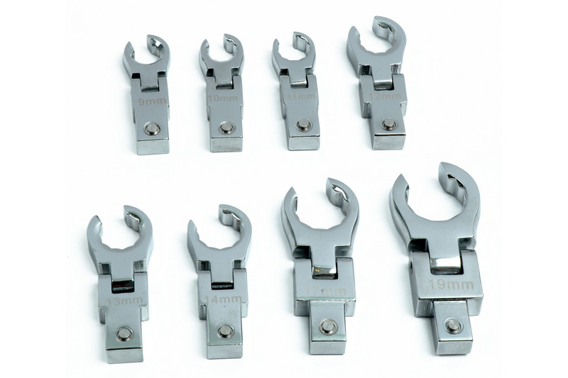 Attachable ratchet heads in spanner sizes 8/10/12/13/14/17/19 mm.