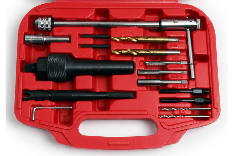 16 Piece Tool Set for removal of Glow Plugs and repairing threads in cylinder head