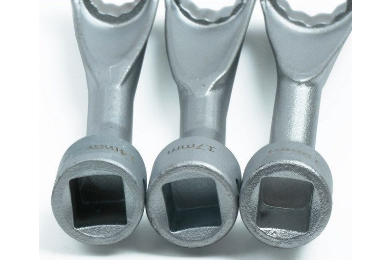 3 Piece Diesel Injection Line Socket Set facilitates the disassembly and assembly of Diesel injection pipes on injectors and other pipe fittings. The Socket set includes 3 Open Type wrenches sizes 14 17 19 mm and is fitted with Holding Rail.