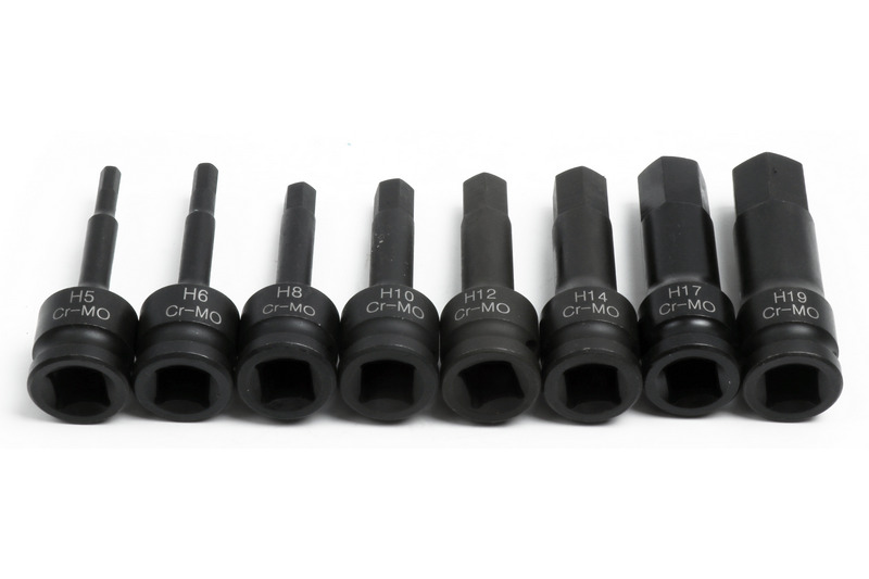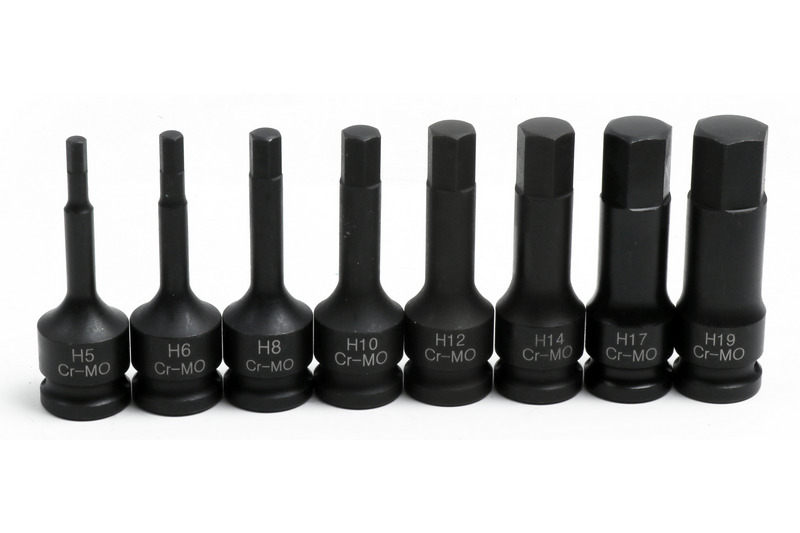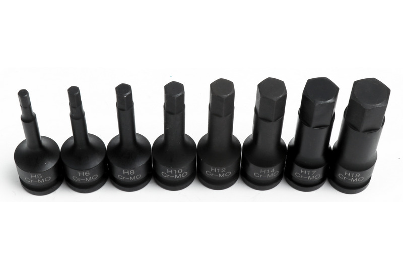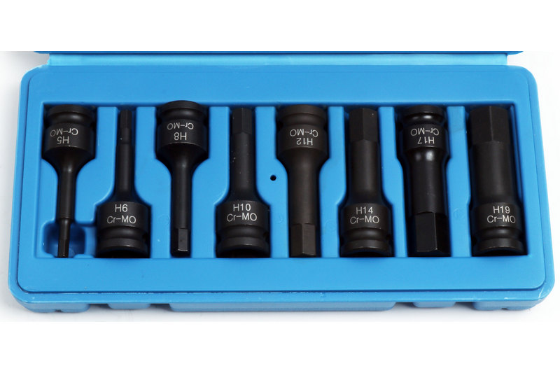 1/2" Drive Impact hex socket set include 5, 6, 8, 10, 12, 14, 17 and 19 mm.