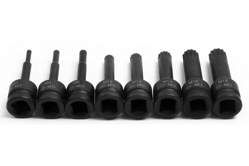 1/2"" Drive Impact 12-point socket set include 5, 6, 8, 10, 12, 14, 16 and 18 mm.