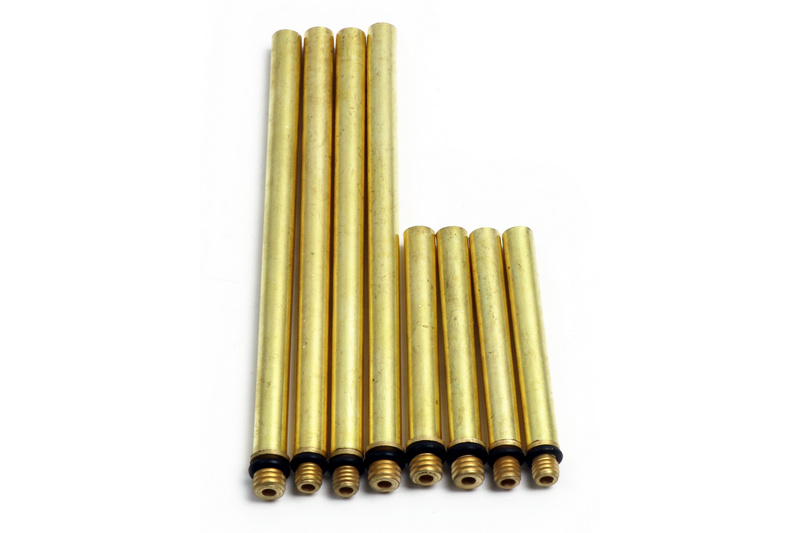 Each unit includes precision gauges, threaded brass carbon fiber extension rods (65mm and 180mm), connectors and vacuum hoses mounted on a sturdy metal base for workbench use.