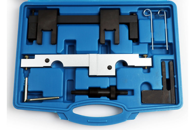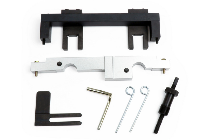 chain tensioner tool, camshaft locking tool, adjusting tool for vanos, balance shaft locking tool, crankshaft locking pin, chain tensioner locking pin.