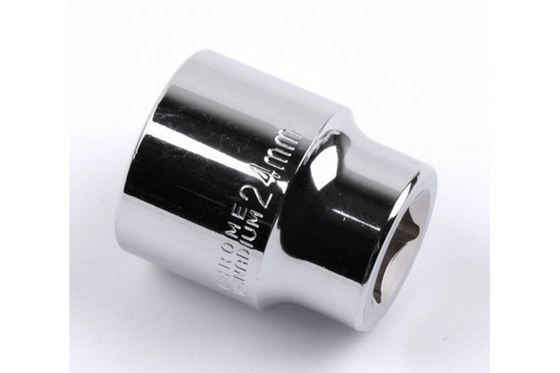Square drive size: 1/2"(12.7mm) ,Socket shape: 6PT Size: 24mm ,Length: 38mm,Upper outer diameter: 30mm,Outer diameter: 30mm,Depth: 18mm Material: Chrome vanadium