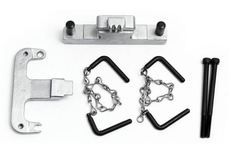 DIESEL ENGINE SETTING/LOCKING KIT FOR CHRYSLER/JEEP/MERCEDES BENZ – 2.1D, 2.2D,2.7D/3.2D CDi/CRD – CHAIN DRIVE Suitable for the timing of Chrysler 2.2D & 27D CRD diesel engines and a huge range of Mercedes Benz diesel chain drive engine. The kit includes flywheel plate locking tools with M6 90 mm bolts and camshaft locking pins. Application: A timing tool set which covers a large of model in Mercedes Benz range, including the petrol and the diesel engines. The set includes flywheel plate locking tools and camshaft locking pins. Suitable for Chrysler PT Cruiser 2.2 CRD and Jeep Grand Cherokee 2.7 CRD