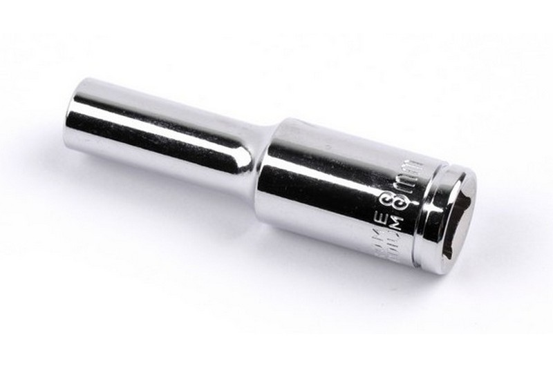 Square drive size: 3/8”(9.5mm) ,Socket shape: 6PT. Size: 8mm , Length: 63mm,Upper outer diameter: 12mm,Outer diameter: 17mm,Depth: 14mm Material: Chrome vanadium