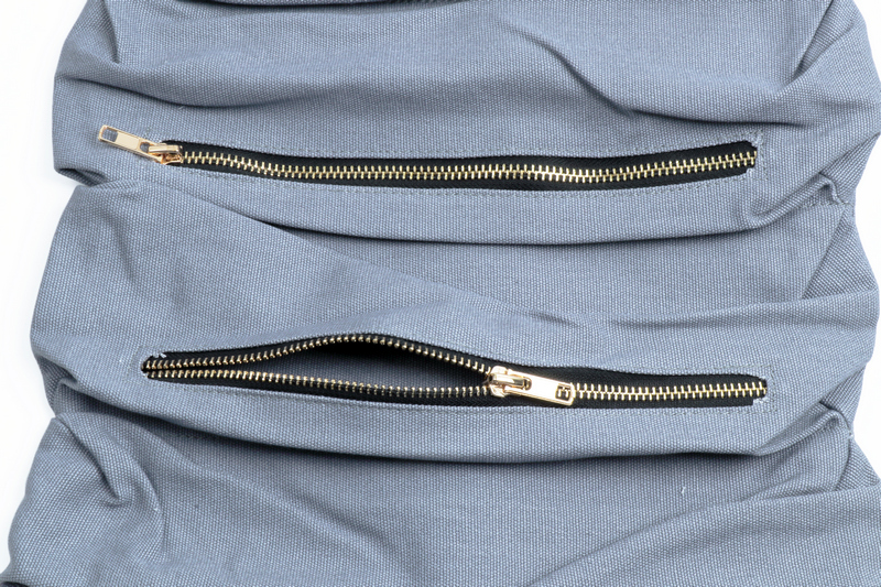5 ZIPPER CANVAS TOOL ROLL UP BAG, GREY COLOR