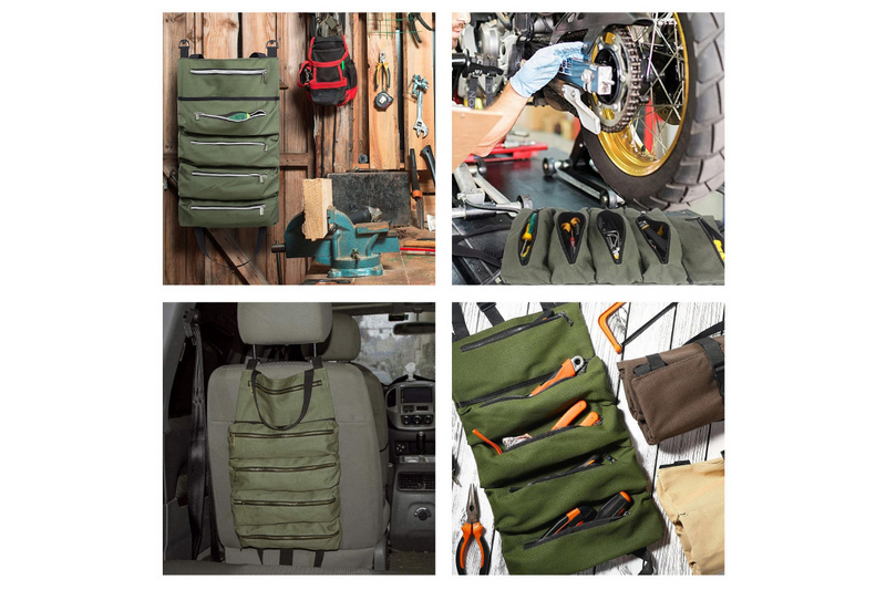 Top Quality,Strong And Lightweight Wrench Roll:Well built with strong fixing strap in the middle, 5 zippered pockets for different types tool accesorries;