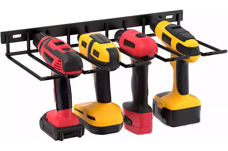 Solidly Built--Heavy duty rack for battery operated power tools.Sturdy enough to hold all of your battery operated tools. The drill holder is made of heavier grade steel ,extremely well made with stiffening ridges built in and clean powder coating straight and smooth finish.