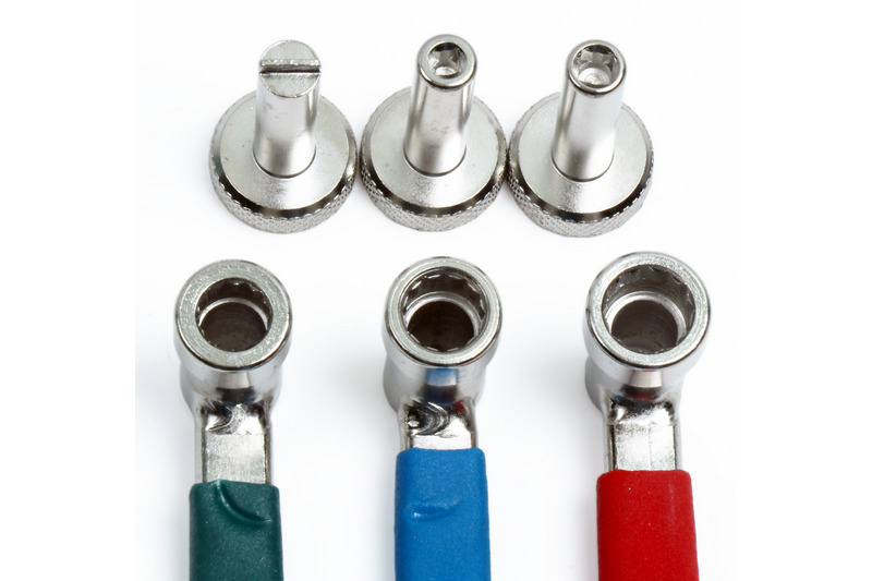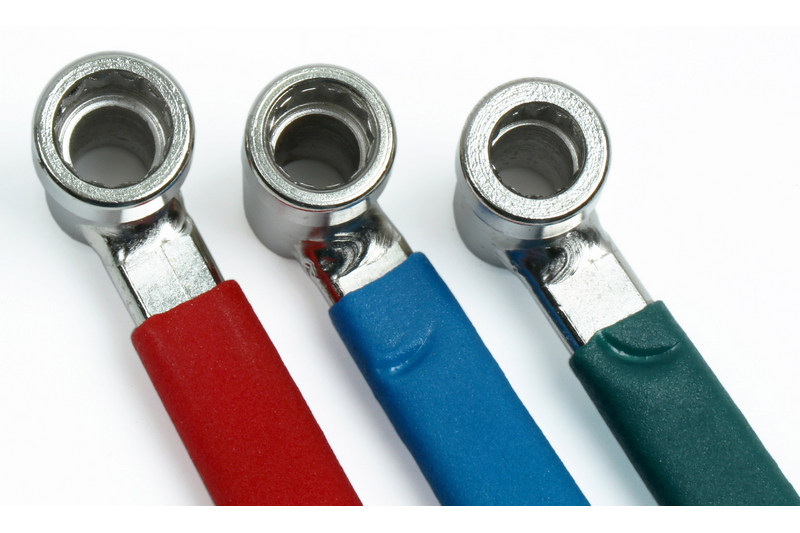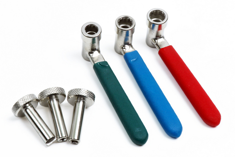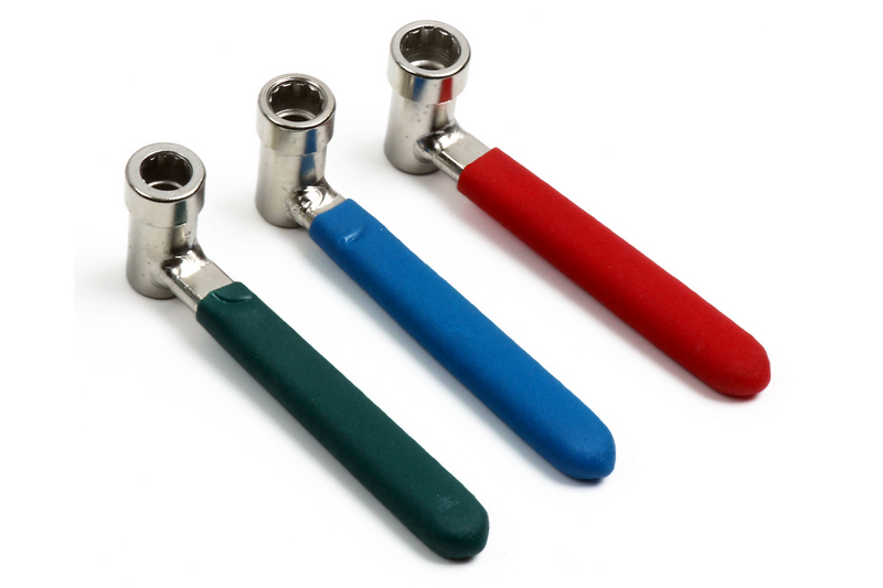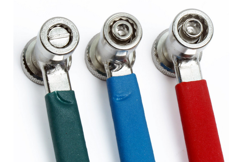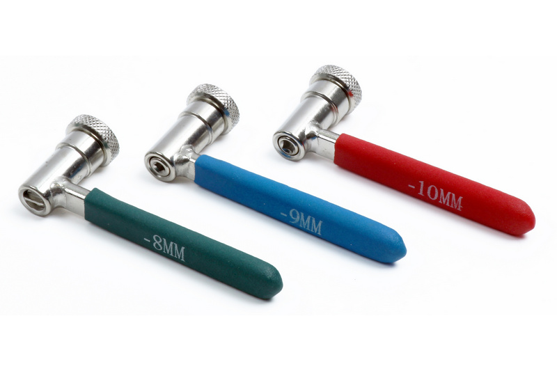 Set contains three wrenches (8, 9 & 10mm) and three adjusters (screw type and 3 & 4mm square-type).