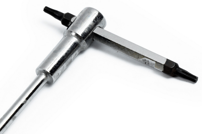 T-Handle design with hex key fittings on all three ends for quick and easy operation