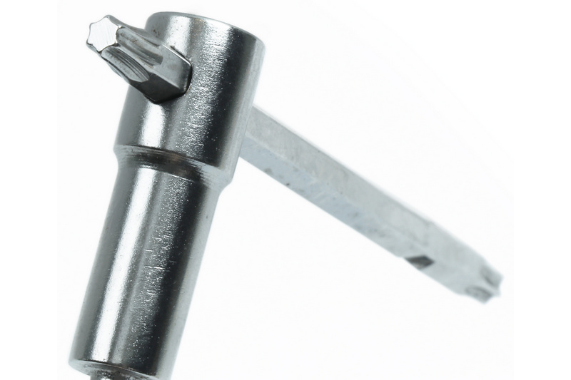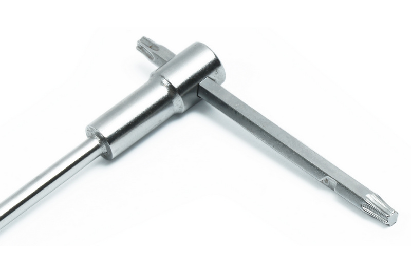 T-Handle design with hex key fittings on all three ends for quick and easy operation