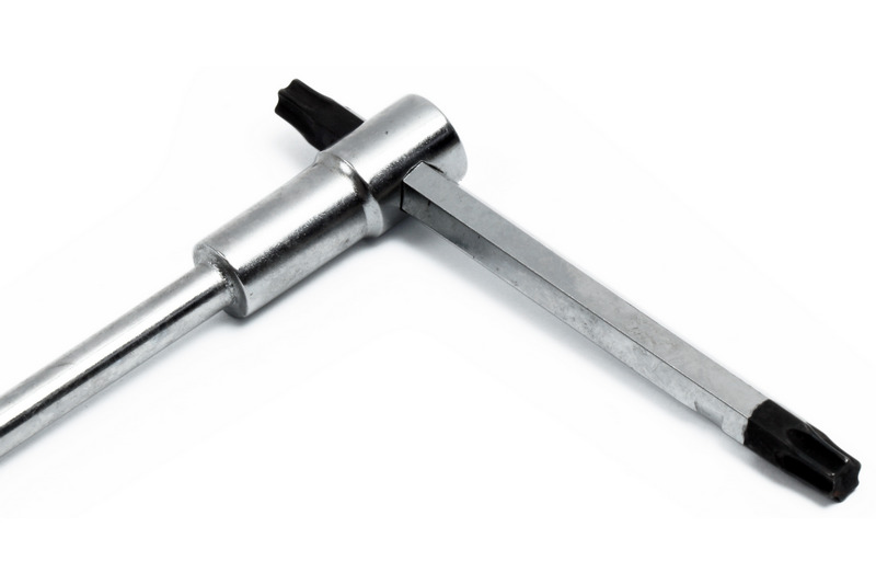 T-Handle design with hex key fittings on all three ends for quick and easy operation