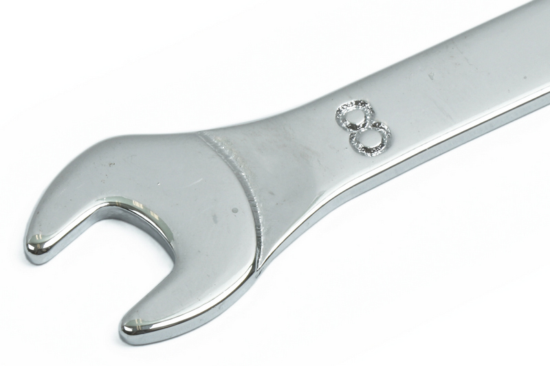SUPER THIN COMBINATION WRENCH WITH 6-POINT BOX END AND OPEN END METRIC, 8MM