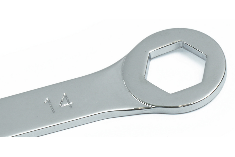 SUPER THIN COMBINATION WRENCH WITH 6-POINT BOX END AND OPEN END METRIC, 14MM