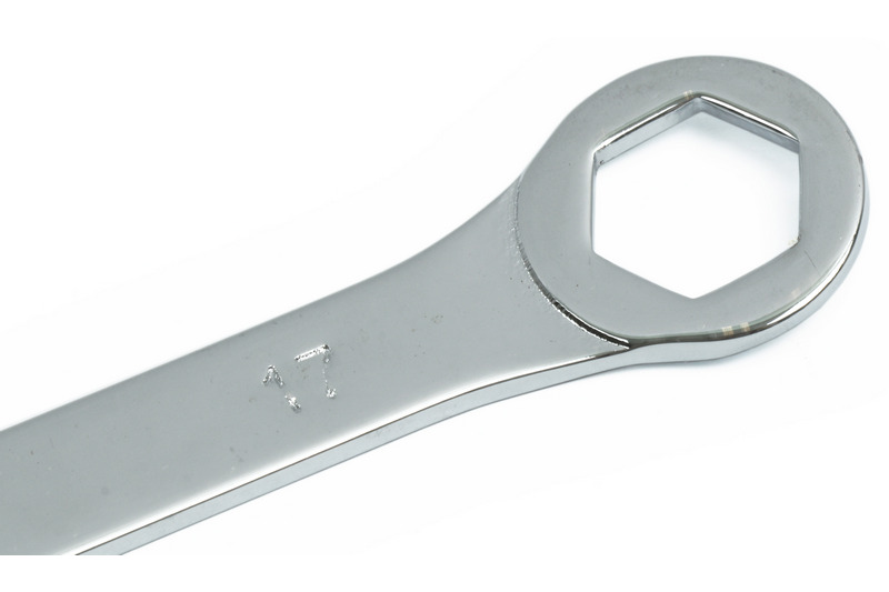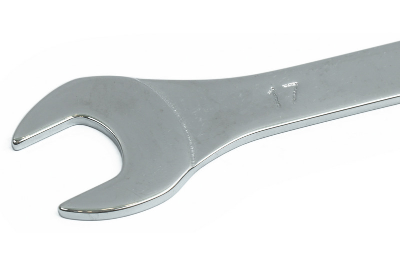 SUPER THIN COMBINATION WRENCH WITH 6-POINT BOX END AND OPEN END METRIC, 17MM