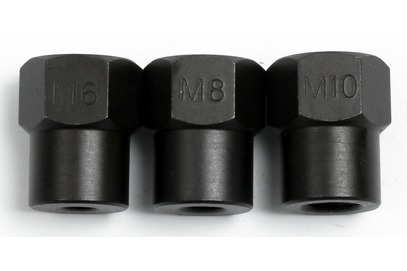 STUD INSTALLATION TOOL SET Works on most motorcycles and will not damage stud threads. Contains 3 sizes : M6 x 1.0 M8 x 1.25 M10 x 1.25 Hex head is 3/4"(19mm).