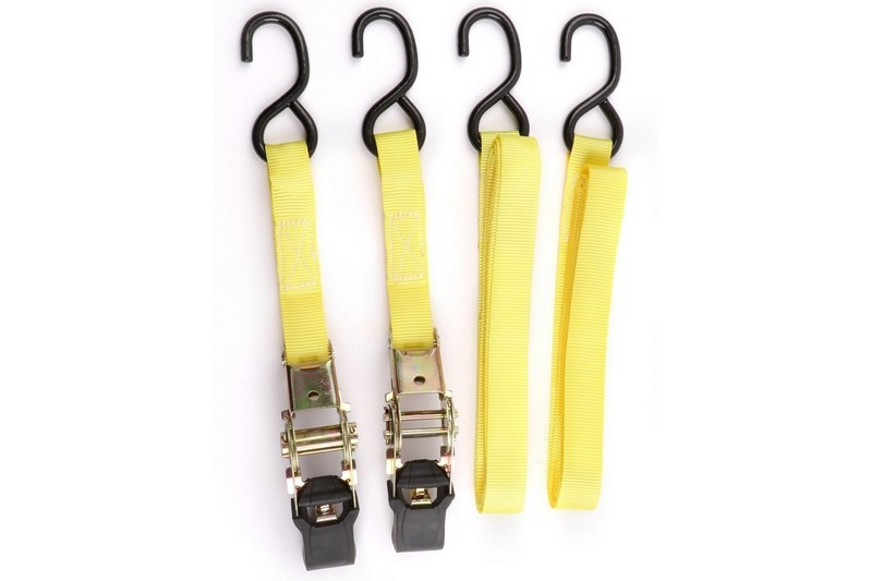 Color: yellow .Belt length: 4.0 m .Belt width: 25 mm Ratchet buckle:800kg .S hook:700kg .Webbing:1000kg