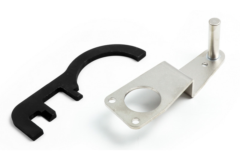 Includes camshaft setting plate, flywheel timing pin and crank-shaft turning tool, and also incldes HP pump sprocket retaining tool required during the pump removal/replacement application.