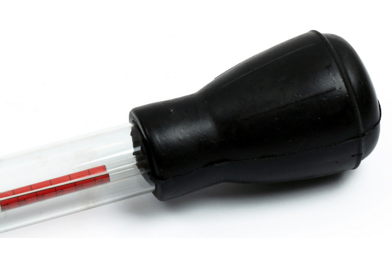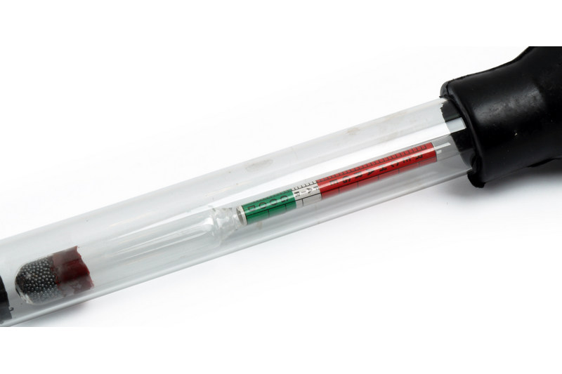 The greater the concentration of sulphuric acid, the more dense the electrolyte becomes, the higher the density, the higher charge.
