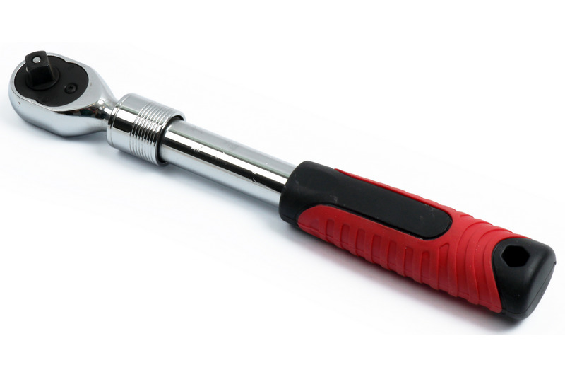 3/8" DR. 72T EXTENDABLE RATCHET HANDLE LENGTH: 228-328MM THICKNESS OF HEAD: 18MM HANDLE LENGTH: 109MM WEIGTH: 490G