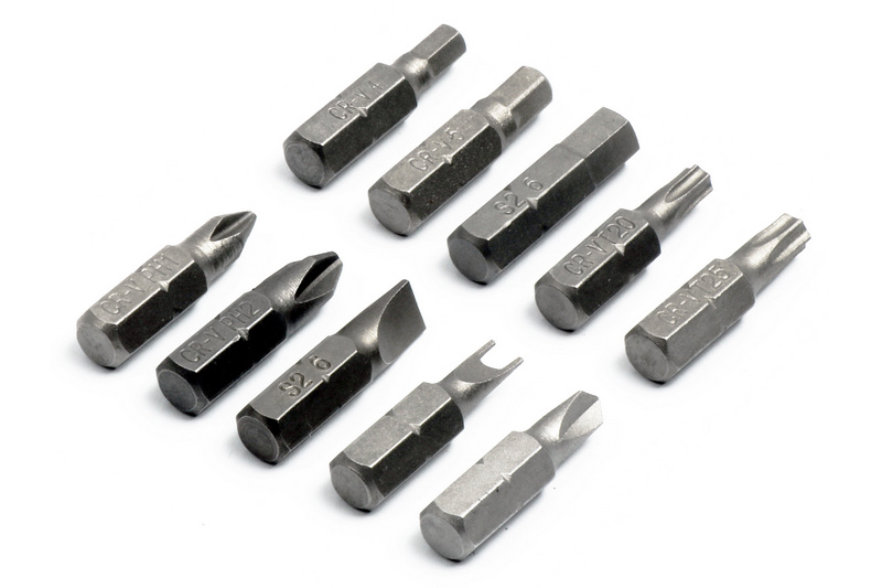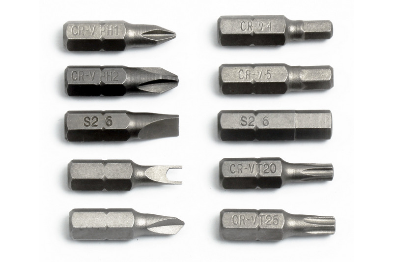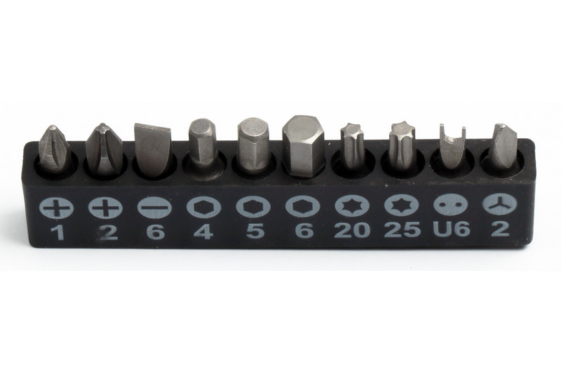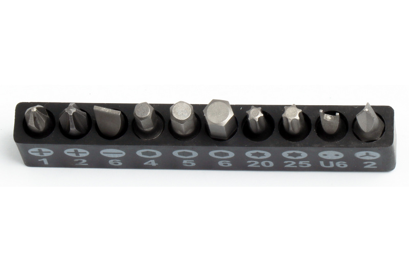 2*Phillips Bit (#1, #2); 1*Slotted Bits (6mm); 2*Torx Star Bits (T20, T25); 1Pc U6 and 1pc 2mm.