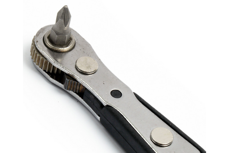 This multi tip right angled combination screwdriver set is powered with a 36-teeth reversible ratchet system made of chrome vanadium steel to ensure smooth ratcheting in both directions and enable precision adjustment. You can adjust the direction by simply dialing the spin button buring use; the miniature pocket size close-quarters bit driver has magnetic like clip inside the hex bit holder help keep the inserted bit tight in position and no falling.