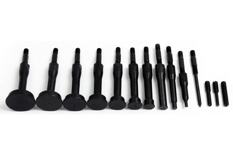 This internal bearing puller set comes with an expandable collet to remove hard parts of bicycles, motorcycles, cars, and small pickup trucks (8-58mm bore bearings) and screw adapters with screws.