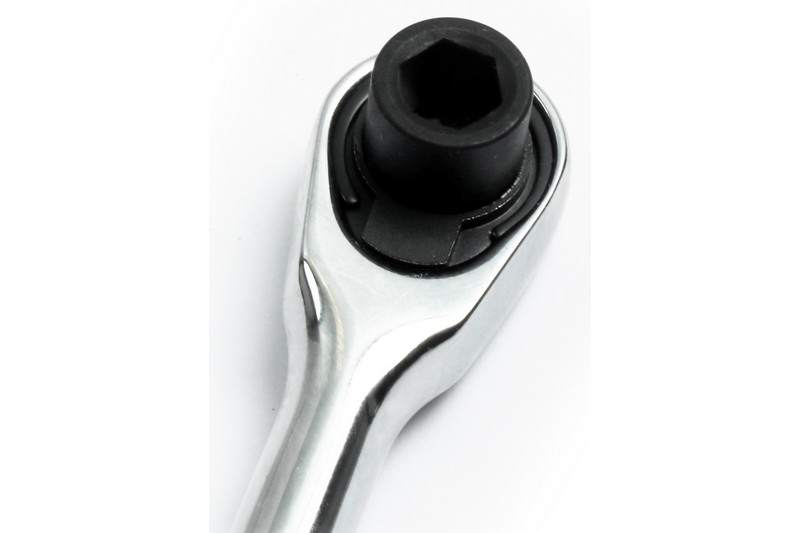 1/4" DR. 72T HEX MINI RATCHET WRENCH WITH HEX END END OF HANDLE WITH HEX HOLE Torque: >62N.M. Length: 95mm Weight: 55g