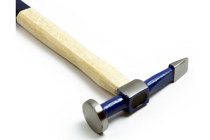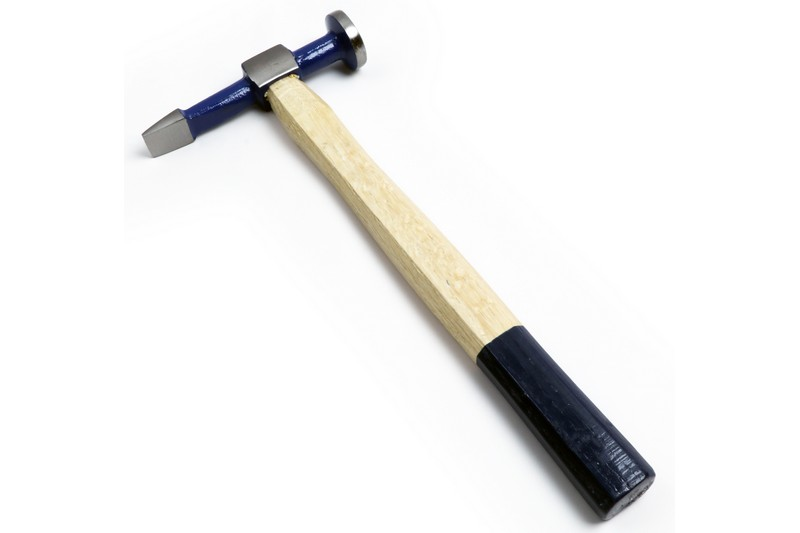 FLAT SHEET METAL HAMMER WITH WOOD HANDLE Length: 320mm Hammer length: 140mm Flat head width: 22mm Round head diameter: 35mm Handle width: 30mm Weight: 485g