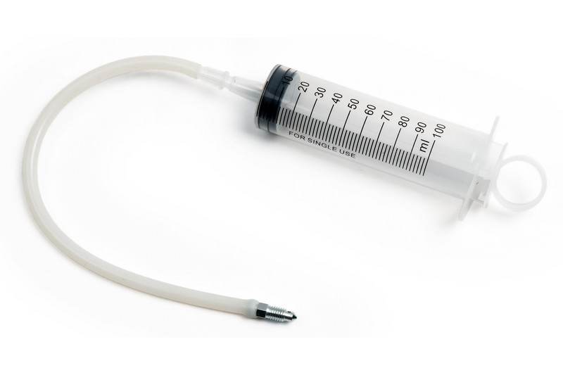 Provides the necessary components for brake bleed, includes 1 x Syringe, 1 x Hose, 1 x funnel connector, 2 x Clamp, 1 x Screw.
