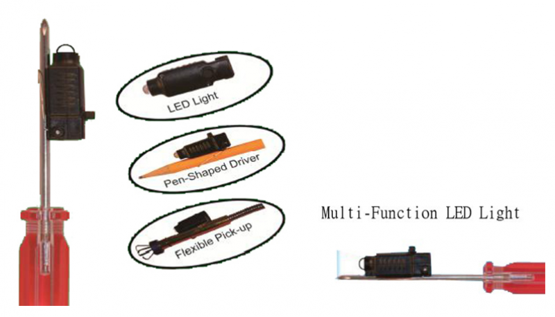 Designed with LED to brightly illuminate your work. Flexible grippers use to any driver betweenψ3~8mm. 3pcs L736F Button-cell batteries included. Use NICHIA LED.