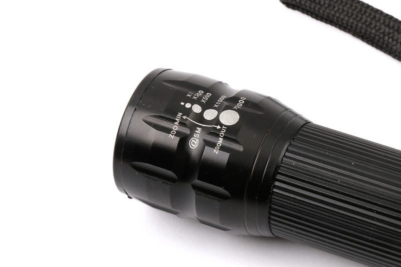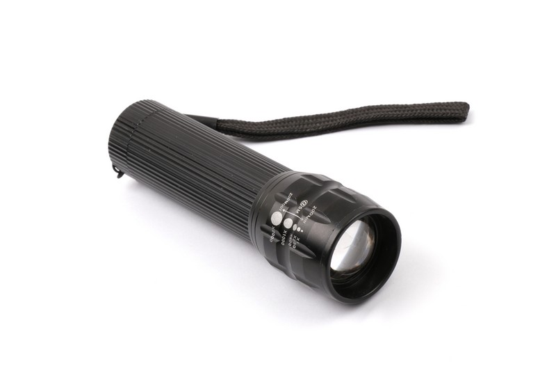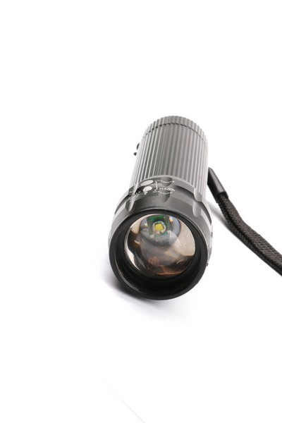 LED bulb:cree 3W. Lens:convex Zooming:telescopic. Switch:tail button Size:30x30x116(124)mm. Battery: 1x18650/3xAAA(not included) Packing: White box