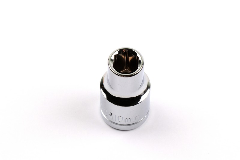 Square drive size: 1/2"(12.7mm) ,Socket shape: 6PT Size: 10mm ,Length: 38mm,Upper outer diameter: 16mm,Outer diameter: 22mm,Depth: 14mm Material: Chrome vanadium