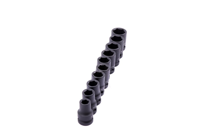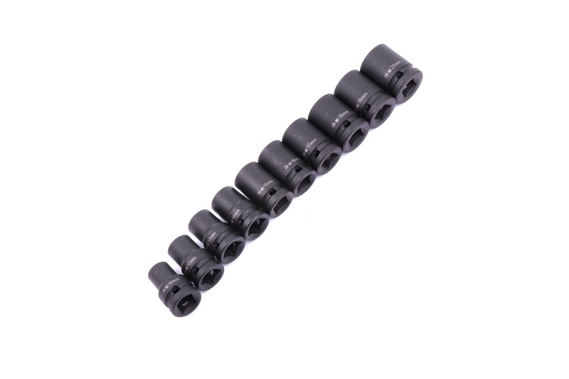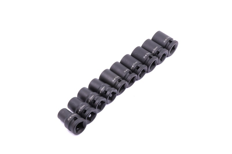 Square drive size:1/2”(12.7mm). ,Socket shape: 6PT Size: 10-12-13-14-15-16-17-18-19-21mm. Length: 38mm Material: Chromium Molybdenum