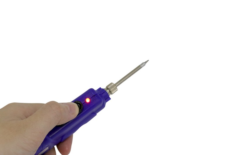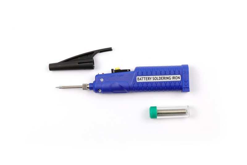 4.5V DC 8W, Blue handle, integrated tip&heater 79-0001, take use of 3 X 1.5V batteries(not included); CE approval Packing: Double blister card