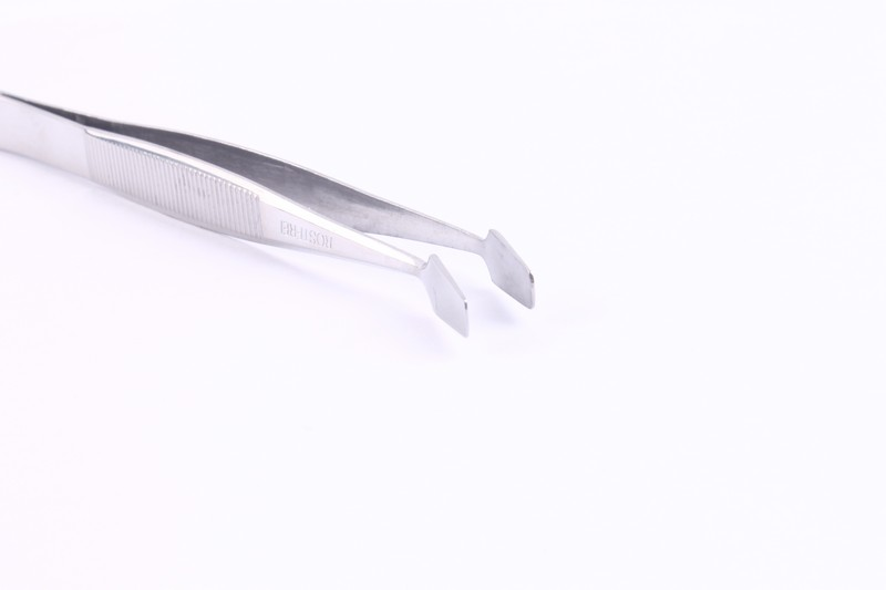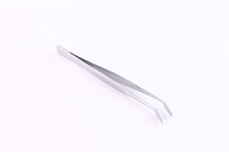 It is a tweezers with an offset at the tip that is flat and grasps on a wide surface, it is hard to hurt your opponent. Overall length: 110 mm