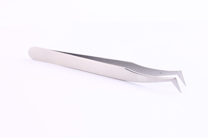 It is tweezers oriented for small work at hand with a sharp angle and short type. Total length: 118 mm