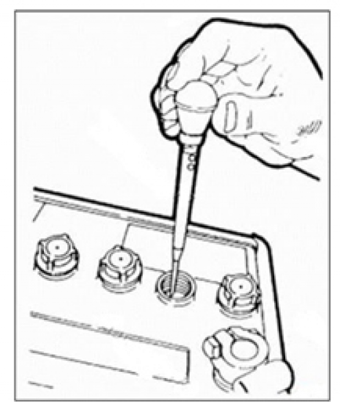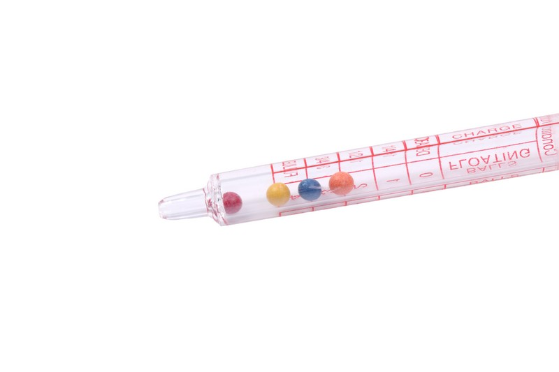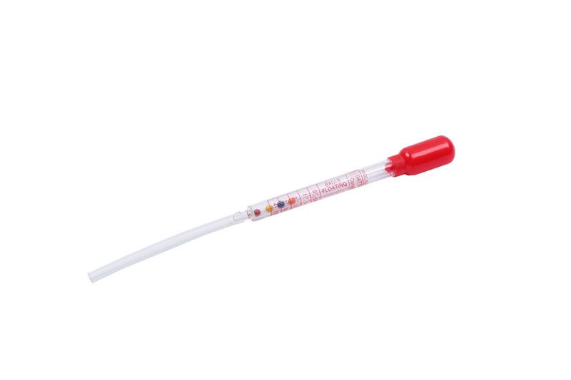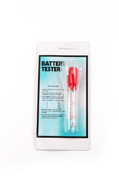 It is a red syringe type compact battery density meter. Battery liquid is sucked up from the nozzle at the tip in the manner of a dropper, and the specific gravity value of the battery is read in graduation at the floating position floating, and it is used as a guide for the replacement timing.