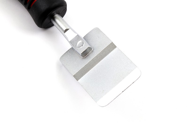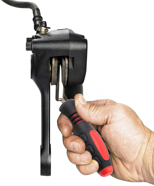 The wedge-shaped slides into a hydraulic disc brake caliper to pre-set the piston when replacing pads, aligning pads, and performing other service procedures. Makes hydraulic disc brake maintenance and repair faster and easier.