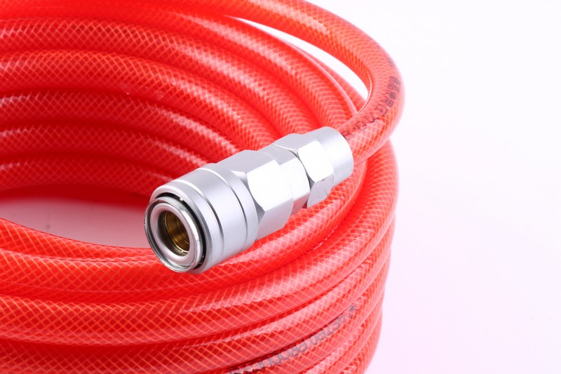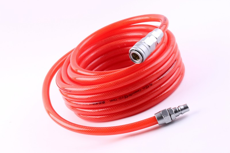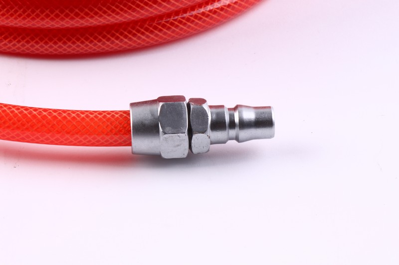Air Hose inlet: 1/4"Japanese e quick coupler + plug Size: 8*12mmx10M Working/burst PSI:150 PSI/450PSI Temperatures: -20℃ -- 65℃ I.D:8mm;O.D :12mm Material: PU. With black plastic sleeve