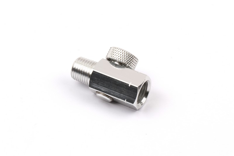 It is an air regulator that adjusts the flow rate of air by turning the round knob attached to the top. Inlet size: 1/4 "PT Overall length: 40 mm Color: Silver
