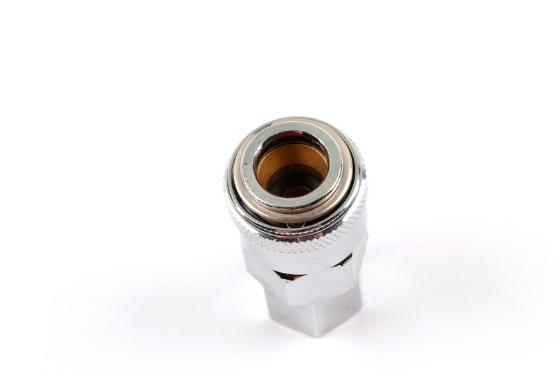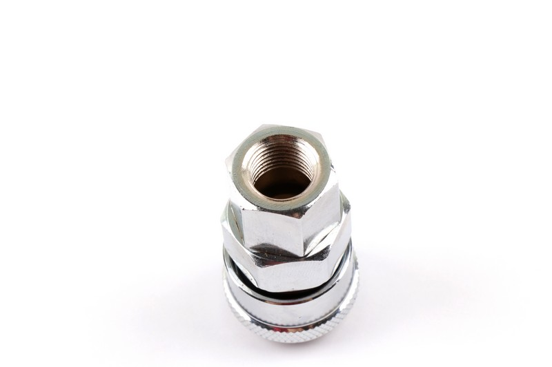 Female type air coupler. Inlet size: 1/4 "PT Size: 22SF Total length: 51 mm Material: Steel Surface treatment: Chrome plating Packing: plastic bag