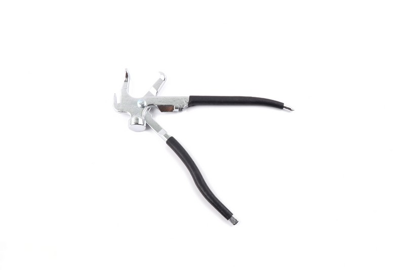 Special tool for balancing automotive tires and wheels; installs,removes, trims, levers, hammers and tightens all type of click-on wheel weights. Total length: 240 mm. Material: S45C